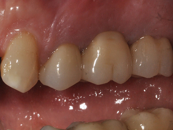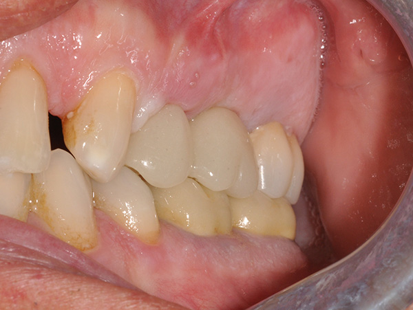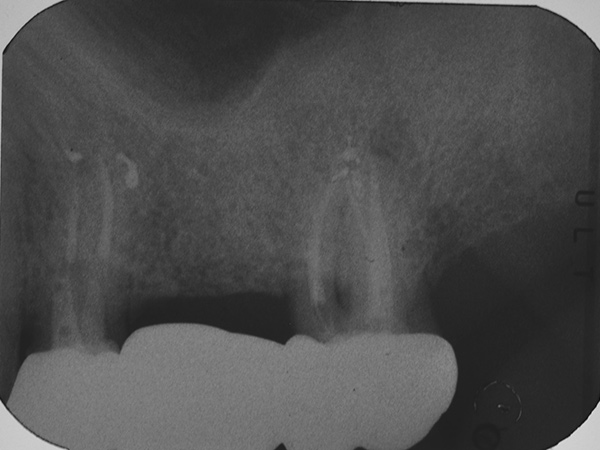 A causa della frattura della radice vestibolare del 24, tramite sondaggio puntiforme e fistola, si è proceduto alla separazione del ponte 24-x-26, conservando l’elemento 26.