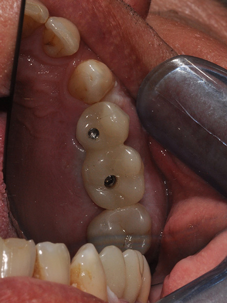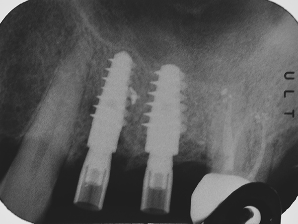 L’intervento è stato eseguito dal Dr. Alessando Casolino (Bologna) dello Studio del Dr. Casolino e la protesi è a cura dell’Odt. Massimo Venerato (Lab odontotecnico C.P. Dental) su MUA tipo A dritti dell’altezza di 1 mm.